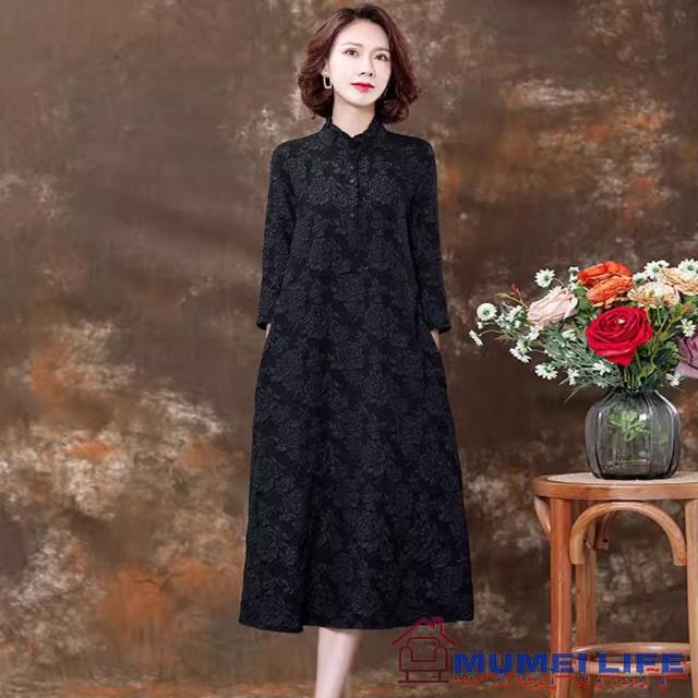 ライン 七分袖 花柄 ロング丈 結婚式ワンピース 叔母 50代 お食事会 顔合わせ服装 母親 60代 40代 お宮参り 70代 祖母 姪 ぼっちゃり シニア 黒