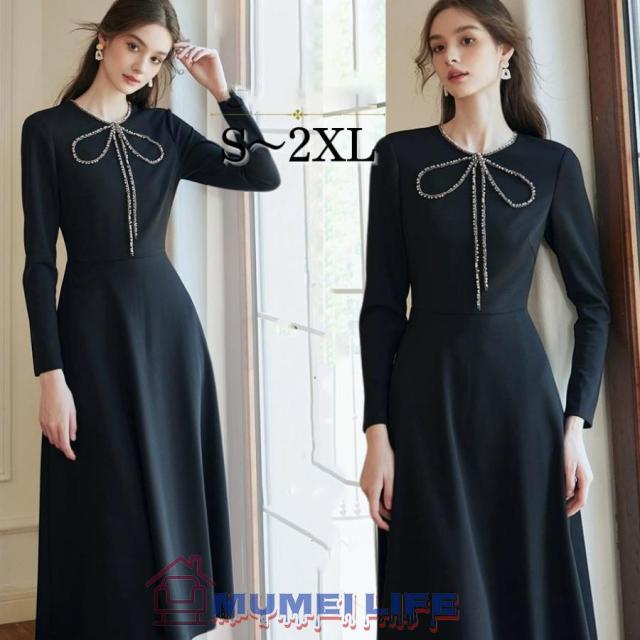 ライン 長袖 ロング 卒園式 入学式 ワンピース 母 40代 結婚式 50代 叔母 女性 フォーマルドレス 食事会 顔合わせ服装 60代 母親 卒業式 ママ 黒