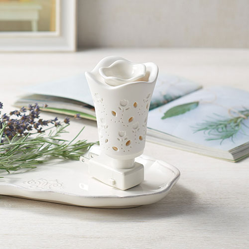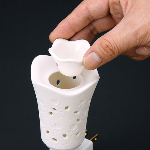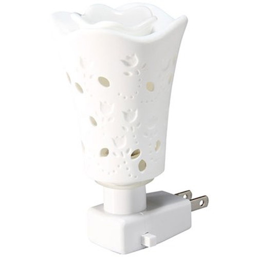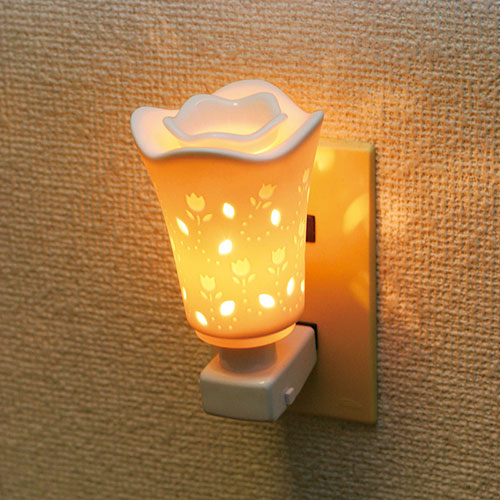 レリーフになった立体的なランプで、チューリップの柄が浮かび上がります。脱着式の上皿アロマ入れは洗えて便利。