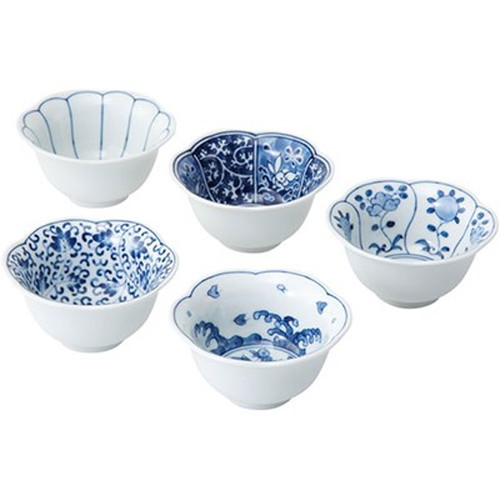 波佐見焼 藍文様 花型小付5客揃 K20688026 雑貨(代引不可)