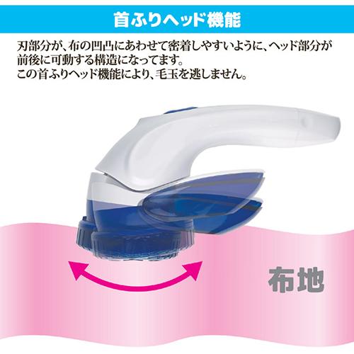 毛玉が出て困る・・・お気に入りの服だから来シーズンも着たい・・・という貴方にオススメの電動式毛玉取りクリーナーです。そんな毛玉取りですが、ヘッド部分が首ふりするようになっりました。この首ふり構造によって、衣類にしっかりと密着でき、毛玉を逃しません。もちろん、持ちやすいグリップ構造や毛玉を効率良くカットできる大型刃にもなってます。高さ調整ができるカバー付きなので、毛足の長いセーター類も安心して毛玉を取り除くことができます。万一のために、網刃が外れていると動作しない安全装置も採用してます(安全のため、お手入れの際は乾電池を外しておこなってください)。