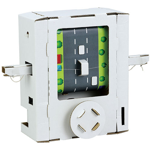 ハンドルを回転させてモーターで動くコースの障害物を避けよう