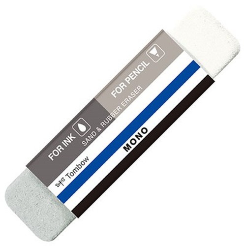 ボールペンで書いた文字や印刷された字を消すための消しゴムです。天然ゴム、硅石粉を使用した非塩ビの消しゴムでインクを紙ごと削ることで字を消します。