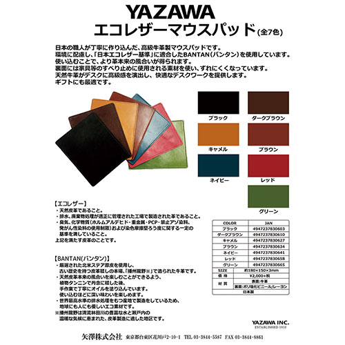 矢澤 YAZAWA エコレザーマウスパッド ブラック footmate30603 パソコン周辺機器(代引不可)【メール便配送】【送料無料】