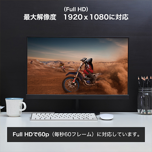 1920x1080/60p(FullHD)までの解像度に対応しており、幅広い機器でご使用が可能です。