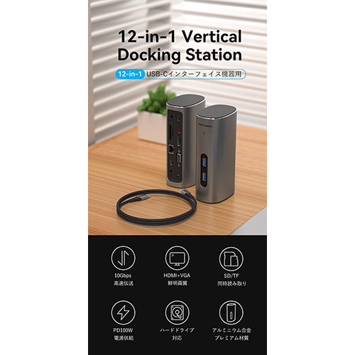12-in-1USB-Cタワードッキングステーションアルミニウム合金グレー