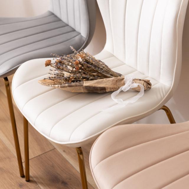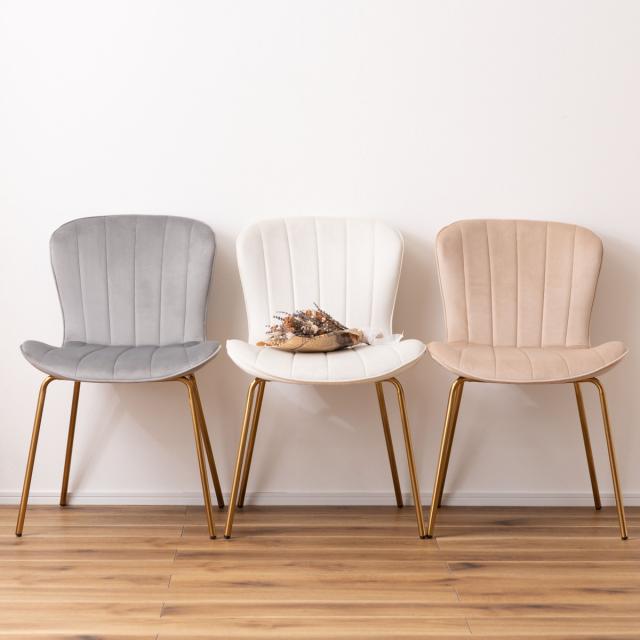 ベロア調生地×アンティークゴールド脚のダイニングチェア