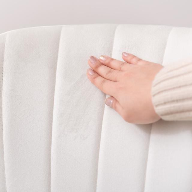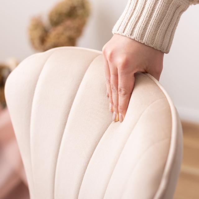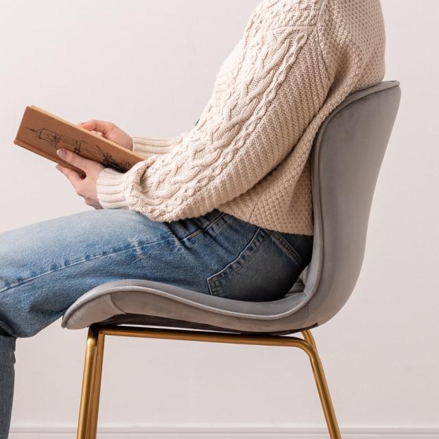 ベロア調の生地×アンティークゴールド脚の組合せが、ガーリーでトレンド感のある雰囲気を演出します。身体を包み込むようなフォルムで、デザイン性だけでなく機能性にもこだわりました。
