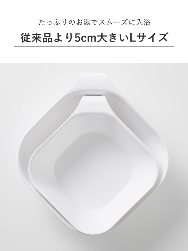 従来品よりも5cm大きくなった湯おけです。身体全体を洗う際に何度も湯を汲み替える必要が減り、よりスムーズな入浴が可能になりました。