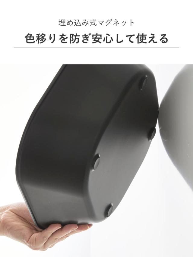 マグネットが底面に埋め込まれているので、設置面への色移りを防ぎ安心して使えます。