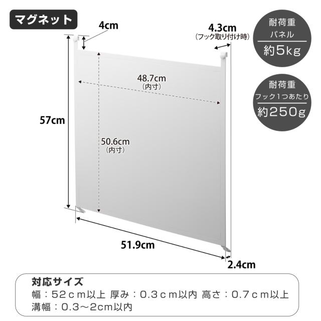 | 耐荷重 | パネル:5kg フック1つあたり:250g(静止荷重) |