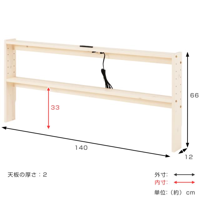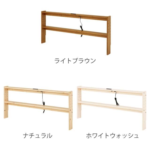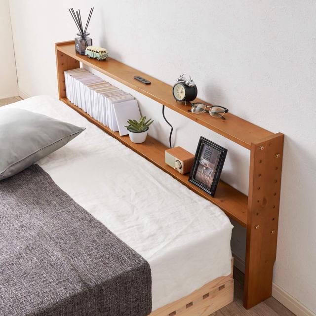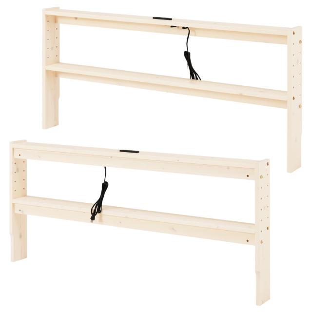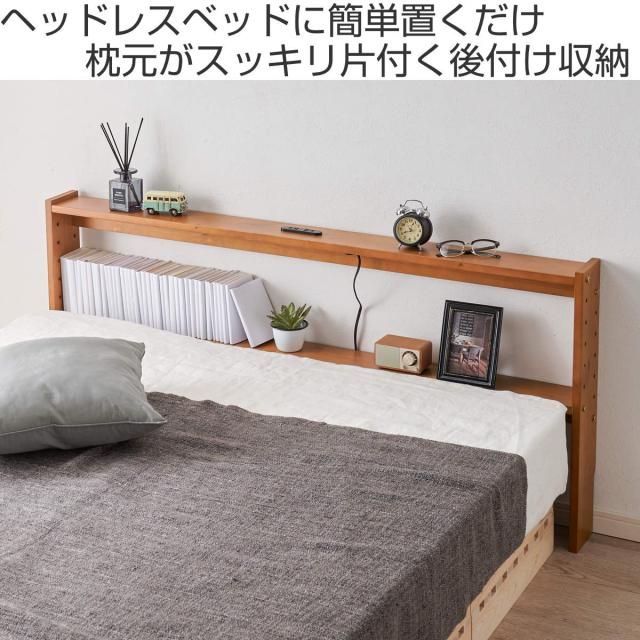 後付けヘッドボード ダブル 2口コンセント 天然木 宮棚 ( ヘッドボードのみ 後付 棚 ラック コンセント付 薄型 ダブル用 収納 省スペース ヘッドボード 間仕切 飾り棚 シェルフ 木製 )