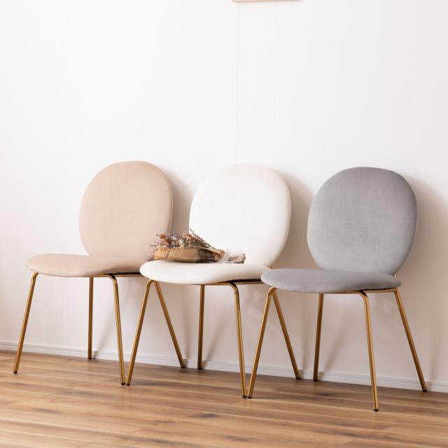 ダイニングチェア 座面高43cm 背もたれ丸形 ベロア調 アンティークゴールド脚 ( チェア 椅子 デスクチェア ドレッサーチェア キャスターなし おしゃれ ゴールド 脚 エレガント 上品 韓国風 完成品 )
