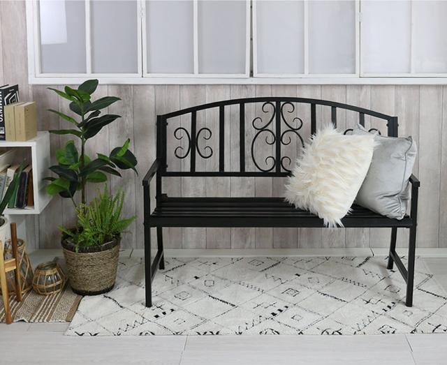 ベンチ アイアンベンチ 2人掛け ( ガーデンベンチ 屋外ベンチ 屋外 イス 背もたれ付き 背付き アイアン ガーデンチェア 鉄製ベンチ 2人 モダン 公園 パークベンチ アイアン製 おしゃれ )