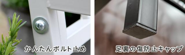 室内や店内でも、実用とディスプレイを兼ねたファニチャーとしてセンスのよい空間作りが叶います。足裏には傷防止のキャップが付いているので、屋内での使用も安心です。