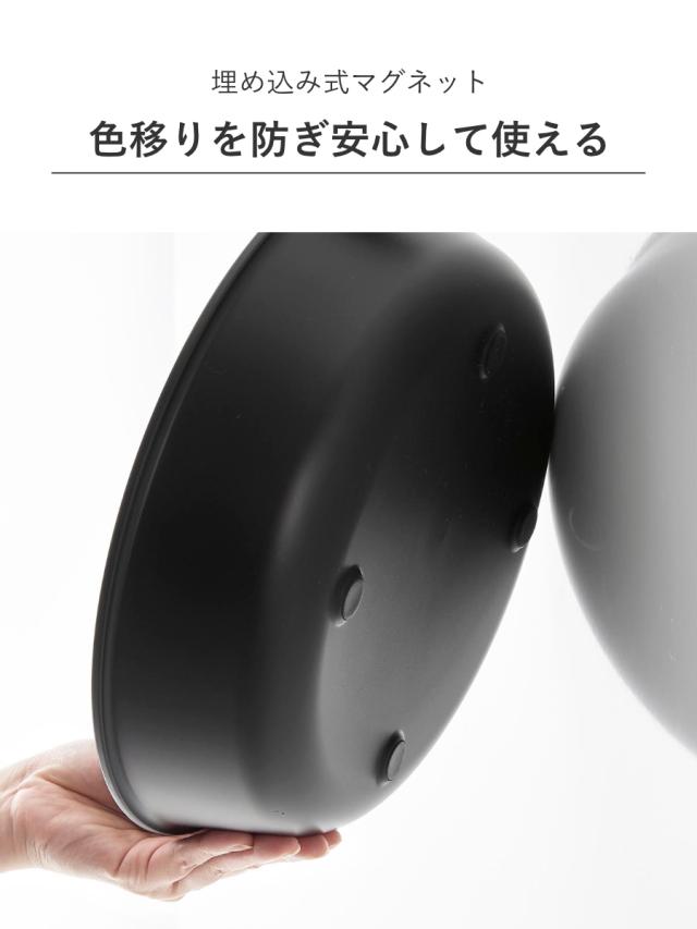 マグネットが底面に埋め込まれているので、設置面への色移りを防ぎ安心して使えます。