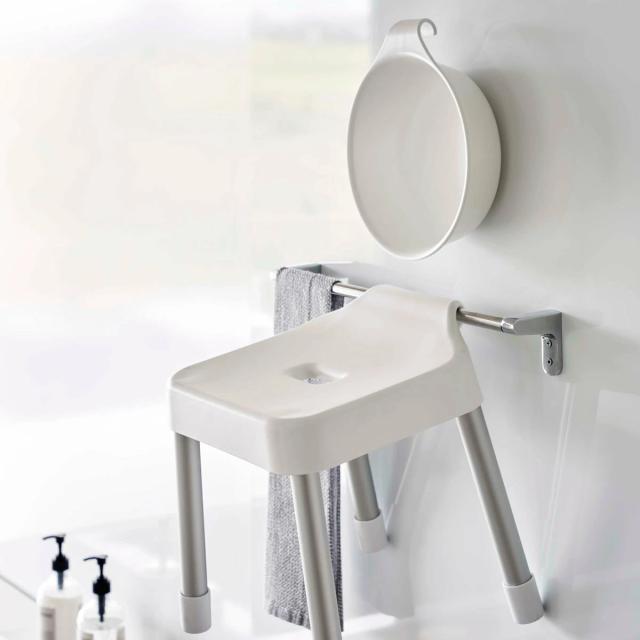 towerシリーズの引っ掛け風呂イスと一緒にお使いいただくと、統一感が出てよりスタイリッシュなバスルームに。使い勝手の良さもバツグンです。