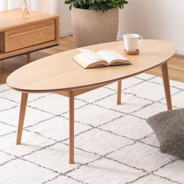 リビングテーブル オーバル型 幅120cm 高さ38cm ( オーク 木製 天然木 ローテーブル センターテーブル テーブル 丸 ラウンド 北欧 シンプル ナチュラル )
