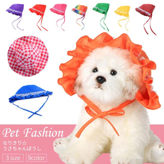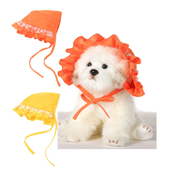 ペット用帽子 頭巾 ボンネット レース あごベルト 猫用帽子 被り物 フリル ギャザー 日焼け止め ペット用品 猫 犬用 猫用 リボン 可愛い 撮影