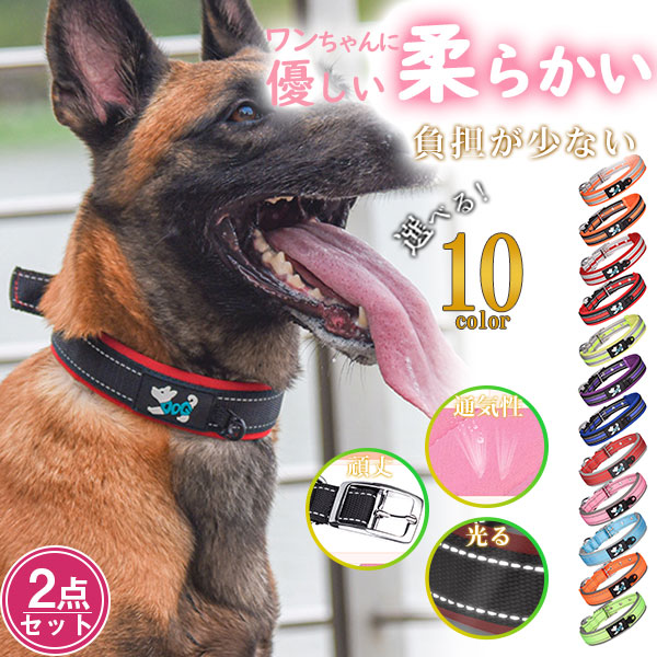 セール中 送料無料 2点セット 犬 首輪 犬用 反射 犬用迷子 軽い ソフトパッド メッシュ 丈夫 蛍光 カラー かっこいい ドッグ 大型犬 超大型犬 小型犬