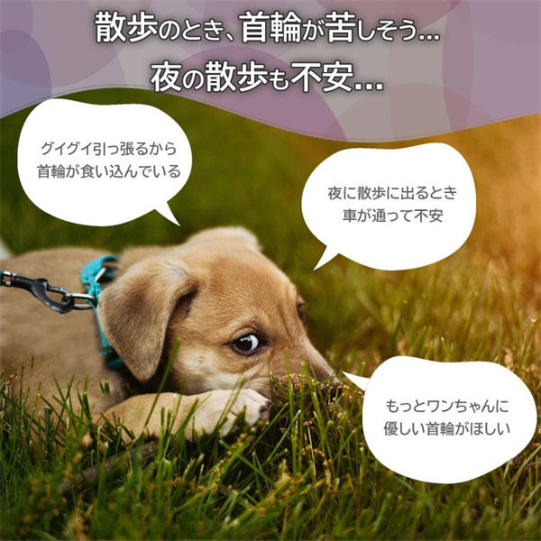 事故を防止したり、迷子になっても見つけやすいので、安心して夜のお散歩を楽しめます。