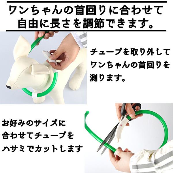 ペットの首回りに合わせてチューブをカットできるので、簡単にピッタリお好みのサイズに変更できます。