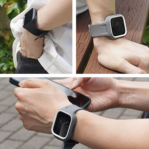 ケースとバンドをシームレスに一体化されており、柔軟な素材のTESiV(テシヴ)と耐久性のよいポリカーボネート素材を組み合わせたAppleWatchバンド