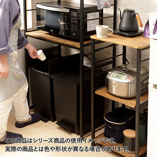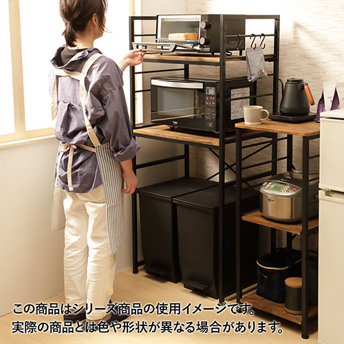 ゴミ箱上のスペースを有効活用できるラック。S字フックが付属しているので、サイドフレームに小物を引っ掛けることも可能です。