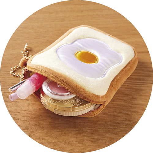ブレッドエッグトーストをモチーフにしたユーモアあふれるデザインのポーチです。