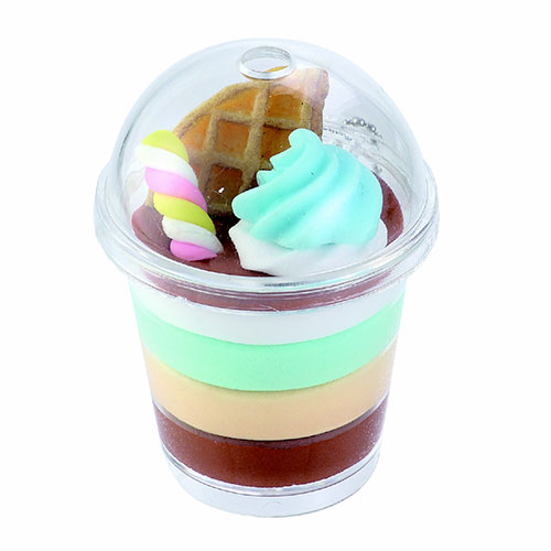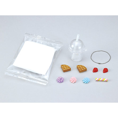 セット内容:ドリンク型カップストロー付×1、トッピングパーツいちご×2、トッピングパーツワッフル×2、トッピングパーツキャンディバー×1、トッピングパーツミニクリーム×3、ATねんど白×1、ボールチェーン×1