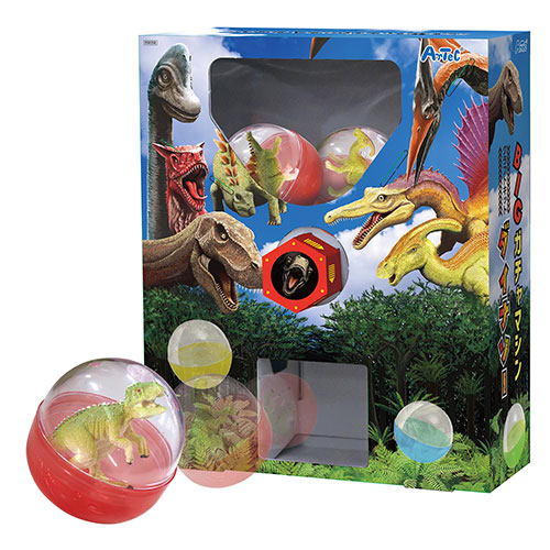 ガチャマシンを組み立てて、お家でガチャを楽しもう!カプセル4つと恐竜フィギュア4種付き!Φ65のカプセル推奨