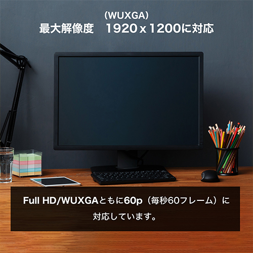 シングルリンク仕様の最大解像度である1920x1200/60p(WUXGA)まで対応します。