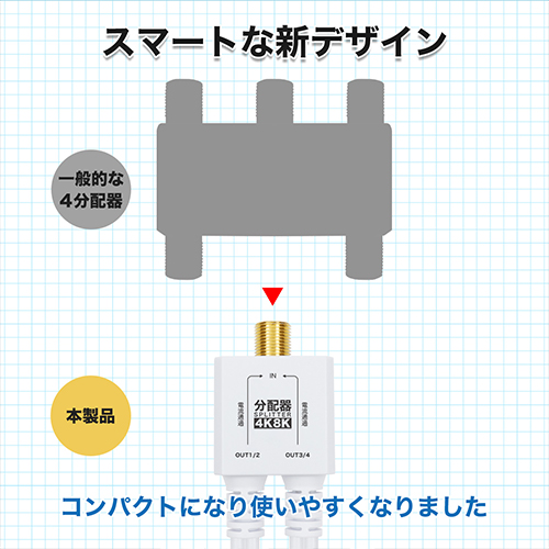 コンパクト設計の4K8K対応4分配器