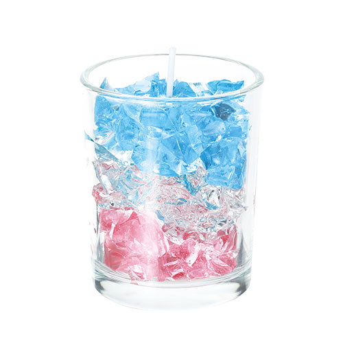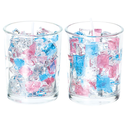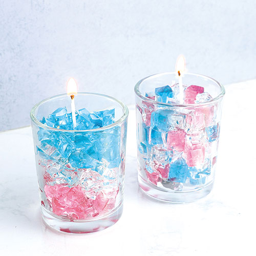 クリア・ピンク・ブルーの3色のジェルワックスでいろいろなデザインのキャンドルが作れます!