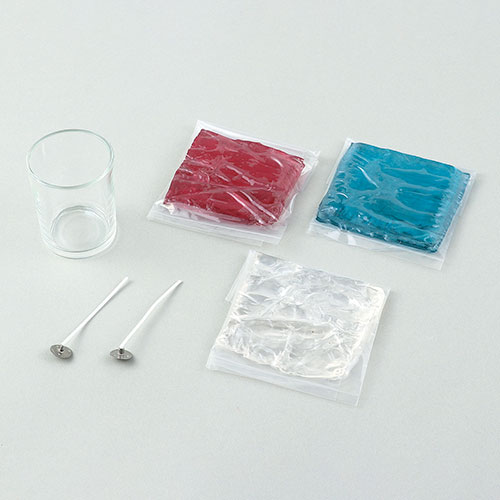 セット内容:ガラス容器×1、キャンドル芯×2、ジェルワックス30g(クリア・ピンク・ブルー)×各1