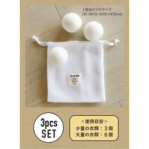 〇乾燥時に一緒に入れると、乾燥時間が短くなり、洗濯物がふんわり仕上がる「ドライヤーボール」