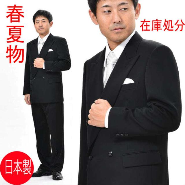 【サイズ限定A7・A8】夏用 ブラックスーツ ダブル RM18034 アジャスターつき4B×1★パンツ裾未処理 略礼服 喪服 メンズ 紳士 ブラックフォーマル 黒 冠婚葬祭 葬儀 葬式 通夜 法事 法要 礼装 サマーフォーマル