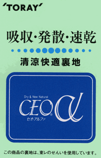 | ■裏地はセオアルファー 清涼快適裏地使用 東レの清涼快適素材セオアルファーⓇを裏地に使用していますから、吸収・発散・速乾を促します。 これで蒸し暑い夏とさよならできそうです。 ![]()