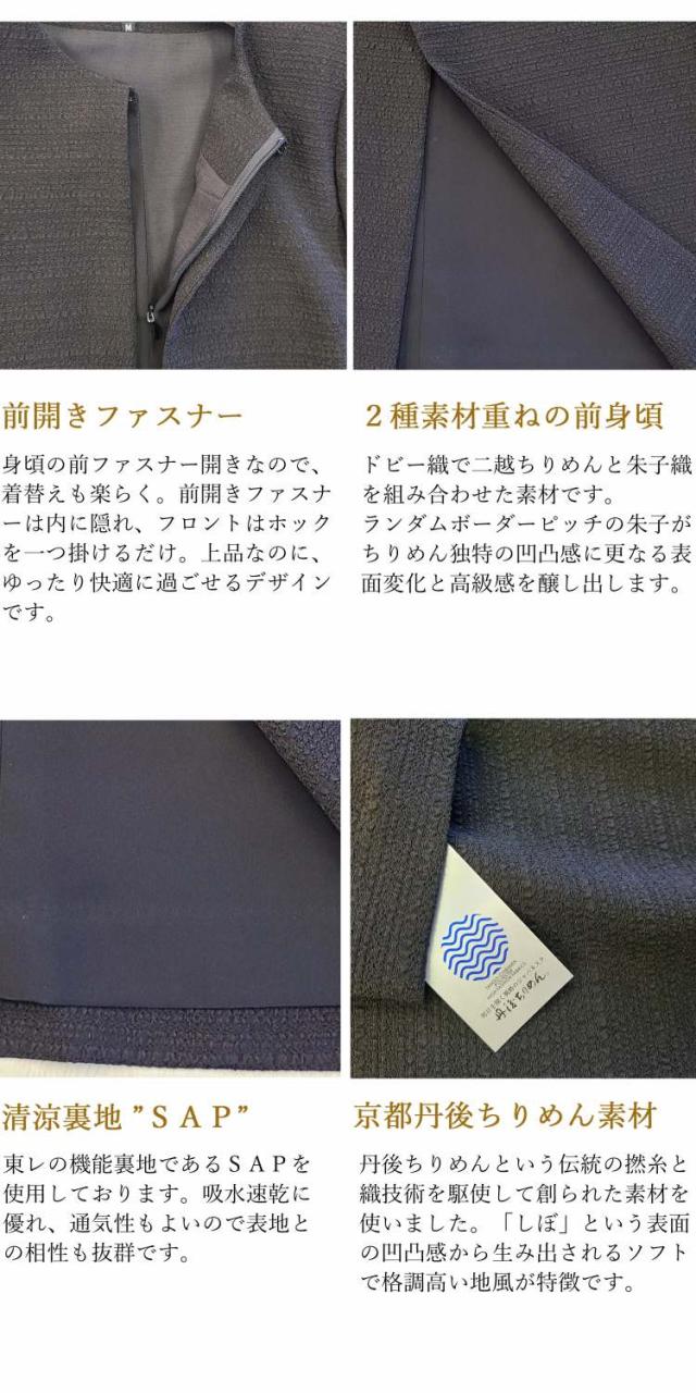 丹後ちりめん素材を使用した、ゆったりとしたワンピース。伝統の織りが映える高品質なブラックフォーマルワンピースです。