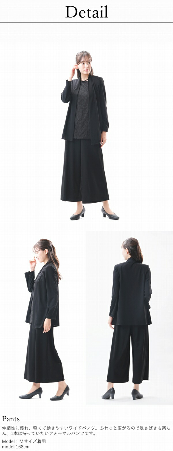ブラックフォーマル ワイドパンツ単品 : RL112076 レディース 大きいサイズ M~3L ストレッチ 弔事 慶事 夏用 婦人 礼服 喪服 ブラウス別売り 日本製 黒 冠婚葬祭 葬儀 葬式 通夜 法事 法要 礼装 レディース
