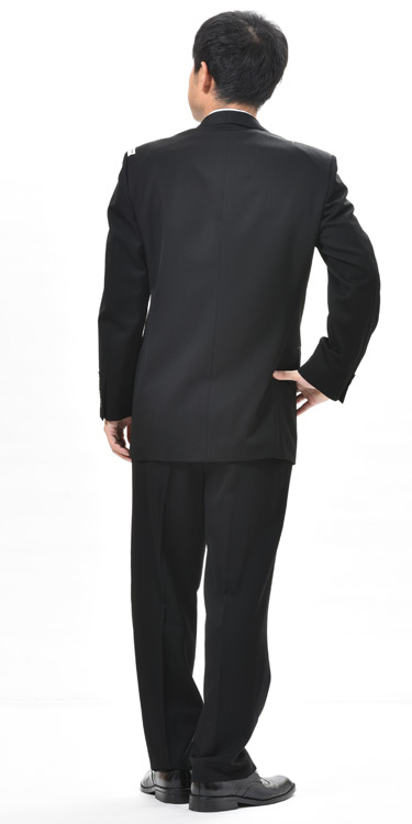 A3・A4・A6・A7サイズのみオールシーズンCDK長大毛織のフォーマル 日本製 ブラックスーツ スーパーテックスのダブル略礼服、喪服:長大毛織4B×1掛:RM2446★パンツ裾未処理