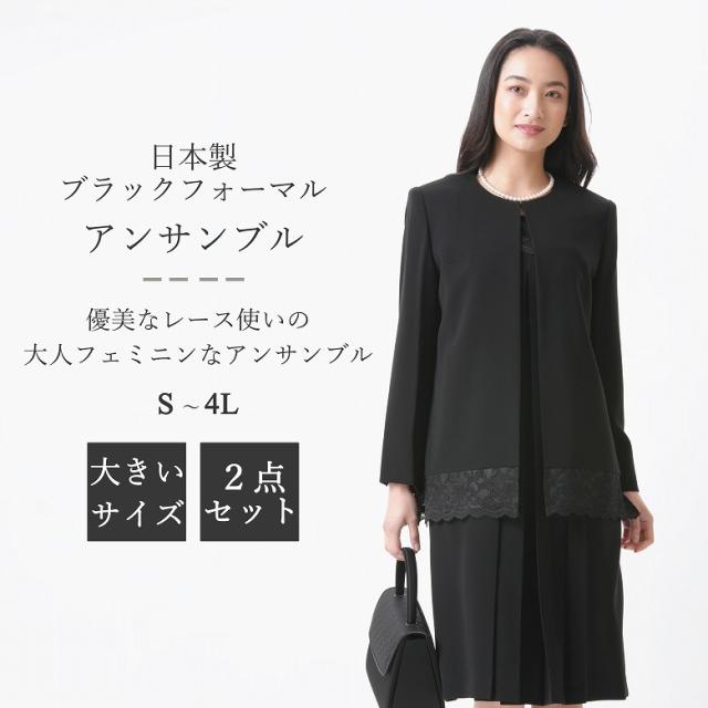 【送料無料/日本製】ブラックフォーマル アンサンブル 【スリーシーズン】 レディース 婦人 喪服 礼服 :RL16132 【ロングジャケット+ワンピース】大きいサイズ【サイズ S〜4L】冠婚葬祭 卒業式 入学式 卒園式 入園式 お宮参り 七五三 葬式 法事 通夜