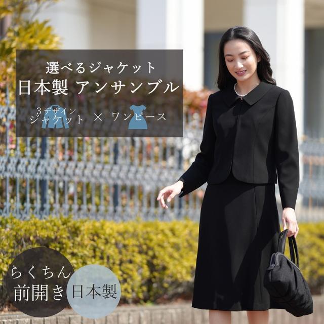 【送料無料/日本製】ブラックフォーマル アンサンブル【選べるジャケット+ワンピース】 :RL1624022 +JK A(RL1624002orKI6402) B(RL1624020orKI6400)C(RL1624034) レディース 婦人 礼服 喪服 スリーシーズン 冠婚葬祭 葬式 葬儀 通夜 法事 卒業式 卒園式 お宮参り 七五三