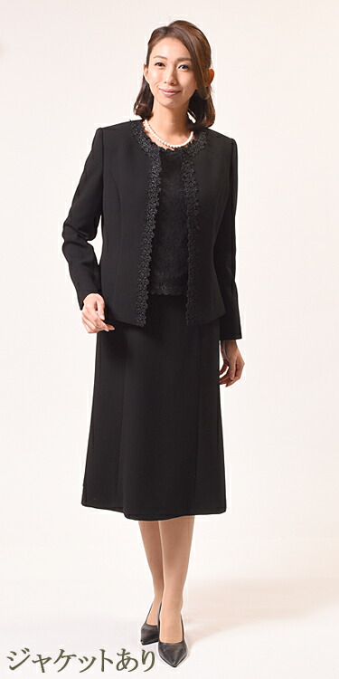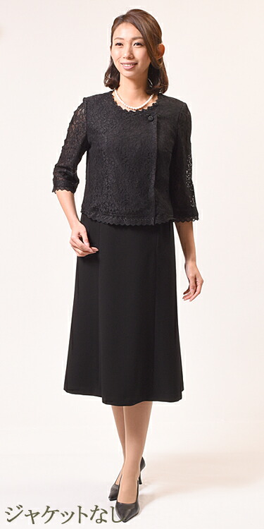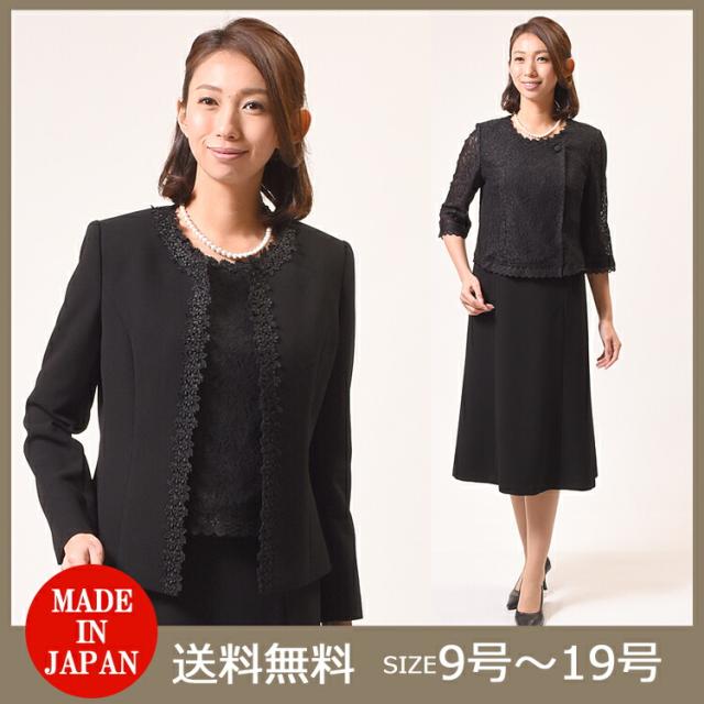合物 ブラックフォーマル アンサンブル :RL17990orGD16200 【前開き】レディース 婦人 礼服 喪服 日本製 大きいサイズ レース 9号から19号 冠婚葬祭 葬式 葬儀 礼装 結婚式 卒園式 卒業式 入園式 入学式 お宮参り 七五三