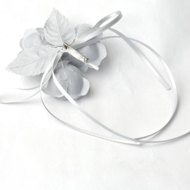 リボン付バラ風デザインのブローチ(ライトグレー):R648(ケース入り)【メール便不可・宅配便】 レディース 婦人 礼服用 喪服用 フォーマル アクセサリー 女性用 冠婚葬祭 慶事