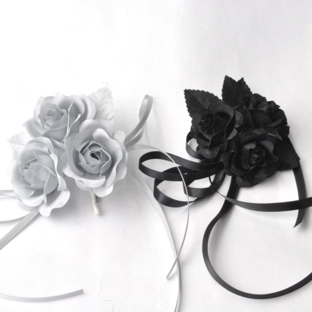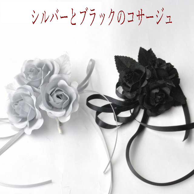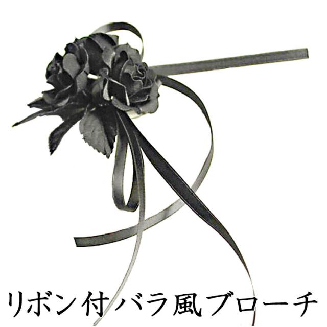 リボン付バラ風デザインのブローチ2個(ライトグレー&ブラック):R379R648(ケース入り)【メール便不可・宅配便】 レディース 婦人 礼服用 喪服用 フォーマル アクセサリー 女性用 冠婚葬祭 慶事