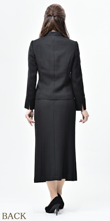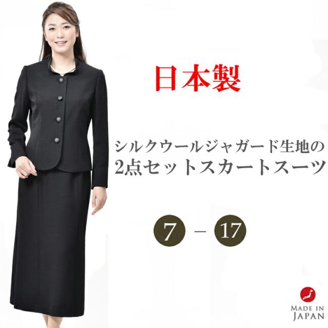 合物 ブラックフォーマル スーツ :RL2684 レディース 婦人 礼服 喪服 【日本製】【7号〜17号】黒 大きいサイズ スカートスーツ【卒園式・卒業式・入園式・入学式】冠婚葬祭 結婚式 礼装 慶事 スリーシーズン シルクウールジャガード