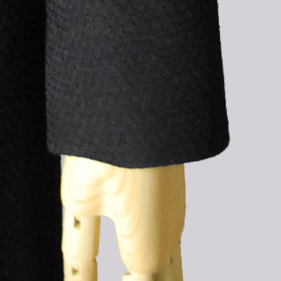 | 袖は折り曲げてもお使いいただけるようスリットが入っています。 | 素材は高級シルクウールを使用しています。 |