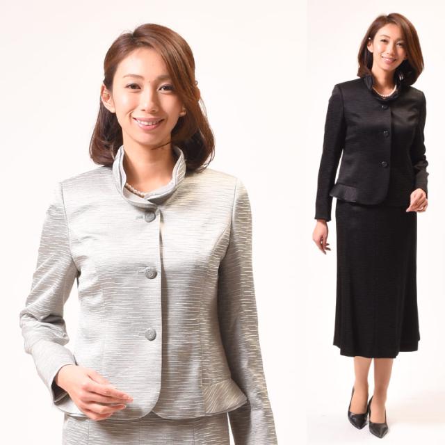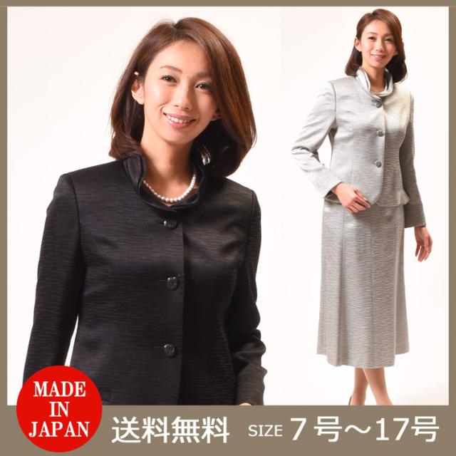 合物 シルク混カラーフォーマルスーツ【ブラック・グレー】:RL2766【桐生織】レディース 婦人 礼服 礼装 【日本製】【7号〜17号】大きいサイズ 黒 灰色 スカートスーツ 冠婚葬祭 結婚式 卒業式 入学式 卒園式 入園式 七五三 お宮参り 慶事 ブラックフォーマル