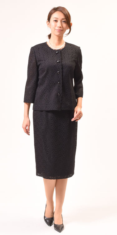 夏用 ブラックフォーマル スーツ :RL2784 レディース 婦人 礼服 喪服【日本製】【7号9号のみとなりました。】黒 スカートスーツ レーススーツ 冠婚葬祭 葬儀 葬式 通夜 法事 法要 礼装 サマーフォーマル